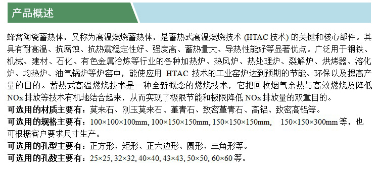 蜂窩陶瓷蓄熱體