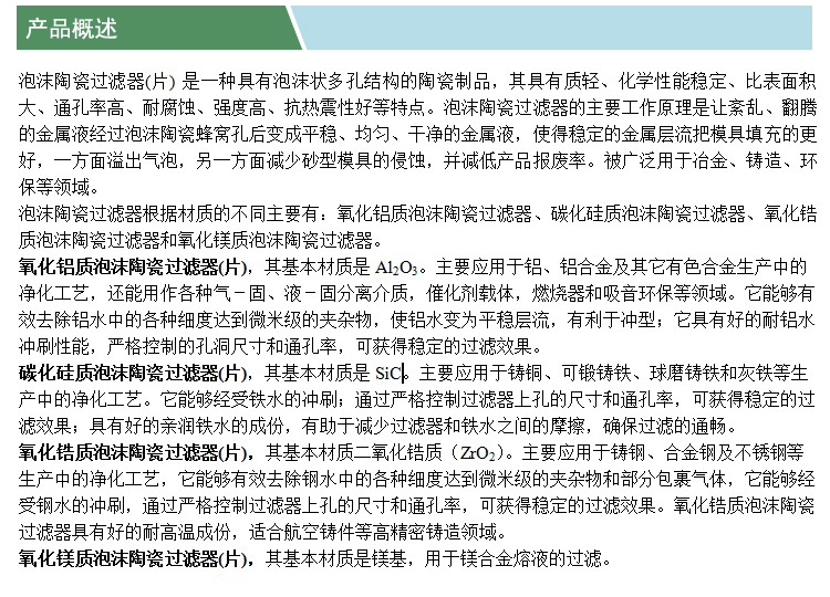 泡沫陶瓷過濾器